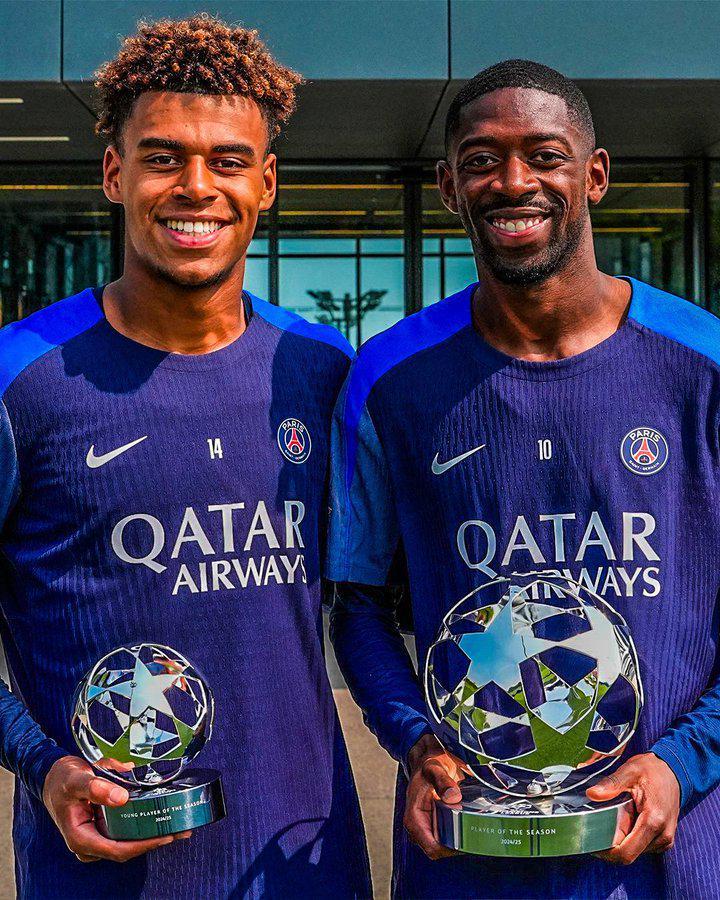 雷速体育9月6日讯 据法国记者Fabrice Hawkins报道,在国家队比赛中受伤的两名法国国脚登贝莱和杜埃都将缺席一段时间,这对于巴黎圣日耳曼来说是个沉重的打击。